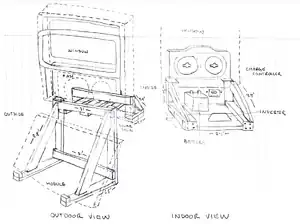 The panel is mounted on a wooden solar rack, constructed of recycled palettes or scrap wood, hung out the window by three horizontal planks which extend to support a shelf rack inside and under the sill for the components. These components, the battery and inverter, are housed in the rack under a hinged wooden flap. Outside, the module rack is trademarked by two supportive thirty-sixty-ninety degree triangles and the inside component shelf features two forty-five degree triangle supports, all screwed into one unit with many three-inch steel screws. There is a space above the window sill between the front and back of the rack (see Figure 5.1) which has multiple implications on the effect of the design. If the user's fan is large, this serves as further protection of the fan from falling, if the user's fan is small, that may necessitate the user place a filler object below the fan, to prevent the inhibition of airflow.