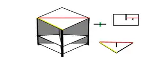 Luego, tomar la pieza C1 y encajar la ranura que inicia desde la parte inferior hasta el centro con la abertura de la pieza C2 que inicia de la parte superior de la pieza hasta el centro.