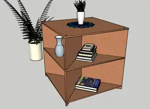 Una vez hechos los diseños iniciales en papel, se procedió a analizar la utilidad de cada uno y qué tan factibles eran realmente al momento de diseñarlos a través de herramientas digitales, en el momento del corte y también en su ensamblaje. La mayoría fueron desechados debido a que para poder ser montados, era necesario utilizar clavos, tornillos o incluso carriles, para su correcto funcionamiento. Considerando que el proyecto se orienta a realizar un producto sencillo de armar, y que no necesite de elementos extras, se procedió a escoger el diseño mostrado en la Figura 1. Una de las principales motivaciones para escoger este fue que, como se observará en los diseños 2D y el modelado 3D, la forma de unión es bastante sencilla. Consiste en un corte en cada una de las piezas que debe unirse, que encaja perfectamente dentro del corte de la pieza unida. De esta forma, se reduce el tiempo en la cortadora láser, lo que debería reducir su costo, y se vuelve más fácil de armar para cualquier persona que desee hacerlo.