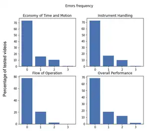 - Highest mean accuracy per question was flow of operations (78%) followed by economy of time and motion (73%), instrument handling (72.4%), and overall performance (70.3%).