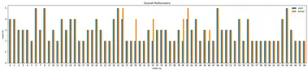 - Figure 2 shows the overall performance but also the three domains individually. You can see that ~70% of videos had a complete match in likert scale scores between human and AI. This approached 80% in the flow of operation criteria of OSATS. The other 30% were off by 1 or more in the 5 point likert scale comparing human vs. AI.