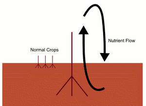 - Recycling nutrients - Deep roots take nutrients from deep in soil and pass closer to surface. Useful if soil has been leached