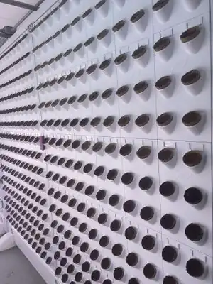 Place the mature plants that need more water to grow at the top of the wall, and the coco-coir cups with smaller plants that require less water at the bottom. If any empty ports remain on the wall after planting all the coco coir cups, cover them with caps.
