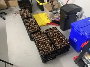 The first step is to determine the number of coco-coir cups needed for planting and the number of seedling trays required to hold them. For example, in the FAST research lab, each seedling tray can hold 36 coco-coir cups, arranged in 4 rows and 9 columns. Each grow wall has capacity for 720 coco-coir cups, which required 20 seedling trays.