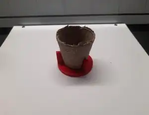 The next step is to use a pot hole puncher, facing up, and gently push it against the bottom of each coco-coir cups to create three clear slits.