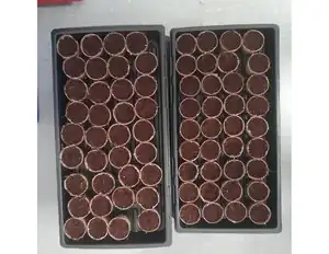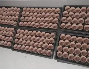 Carefully place the cut coco-coir cups into the seedling trays, and repeat this process until all 720 coco-coir cups (or any other required number of coco-coir cups) have been cut at the bottom and placed into the seedling trays.