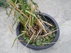 Fig 6: A reclaimed oven shelf keeps the plant roots suspended.