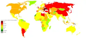 Worldwide air pollution is responsible for large numbers of deaths and cases of respiratory disease.[1] While major stationary sources such as power plants are often identified with air pollution, the greatest source of emissions is actually mobile sources, mainly automobiles.[2] Greenhouse gases such as carbon dioxide, which contribute to global warming, have recently gained recognition as pollutants and internationally laws are being developed to reduce these emissions.