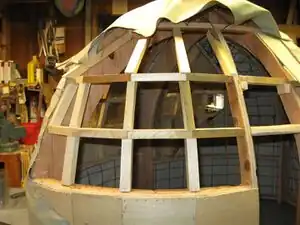 Designate the open area of the structure you wish to cover and create a frame using pine, fir, cedar, or any other type of structural wood. Use a either a band saw or chop saw to cut the pieces for the frame and use wood glue and nail gun to attach them to one another.