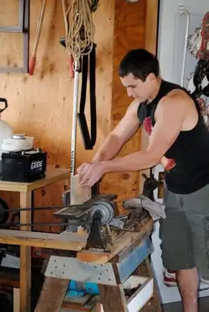 Cut two hardwood boards to 2"x4"x6" dimensions (note: Please use safety goggles).