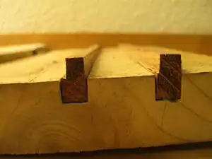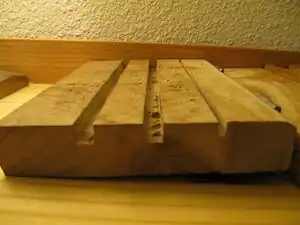 Insert two 3/8"x6"x3/8" hardwood slats into grooves of one of the boards.