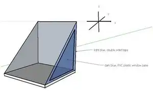 Determine greenhouse size draw out greenhouse and label dimensions. Keep in mind, the relation to your window area or surface area you are building around. Minimize the height, as it just increases the surface area of heat loss. my total height = half of the total window pane height total length= width of 1 window total depth = 2 pots deep build the greenhouse to size of window or surface area you need - including out in the open if you prefer!