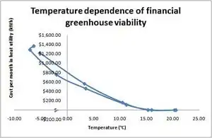 Lastly, to determine if a greenhouse is an affordable option for your region check the following graph - it outlines the cost per temperature. If you're climate is consistently below 10 C then it is not a good option (based on this graph 'Temperature Dependence...'.