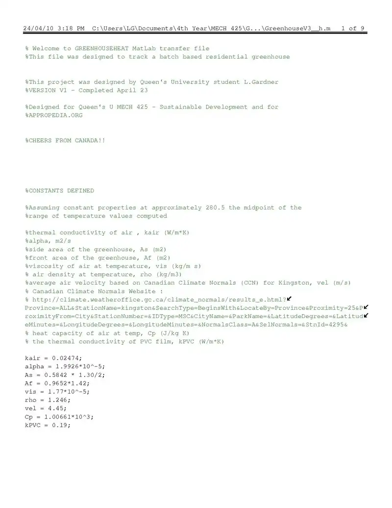 6. Andrews, R; Pearce, J.M.. Environmental and Economic IMpacts of a Greenhouse Waste Heat Exchange. Queen's U, Depaterment of Mech and Mat. Engineering, 2010.