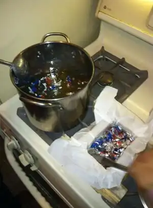 Melting HDPE #2 Plastic in Soy Oil on the Stovetop
