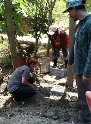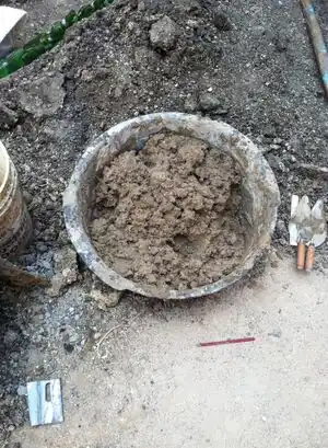 Mix earthen mortar. Recipe: 1 part sand, 1 part clay, add water until a non-runny mortar-consistency is reached. Note: The ground in Arroyo Norte has high clay content, so we used the local clay from around our project site.