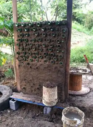 - Mosquito-proof the completed wall. For example: Fill bottles with water and wine corks to seal the moisture and to illuminate the space more.