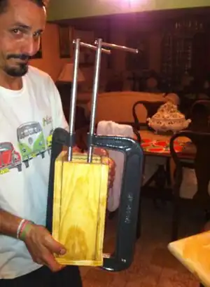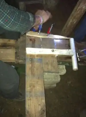 Put the lid on the wooden mold and clamp it shut. (Or use a plastic pressing machine AKA Jesse Brown, as pictured)