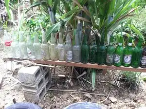 Collect similarly sized glass bottles. We used a combination of large Presidente bottles and medium-sized Brugal bottles.
