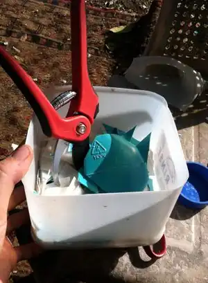 Re-use HDPE Scraps | Use pruning shears to cut the unused melted plastic material. This plastic can be re-melted over and over again using the same process. |
