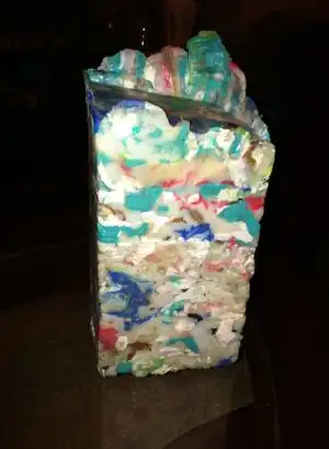 Let the plastic cool for 4 hours, then remove from clamps and mold. If all goes well, you should have a beautiful plastic brick. Note: Some edges may need to be cut with a saw to make clean lines. This is a result of too little pressure applied to the plastic during the cooling period.