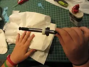 Find your motor and add some electrical tape around the motor shaft. About 2-3 wraps is good.