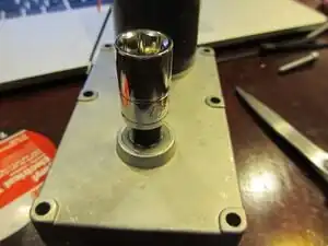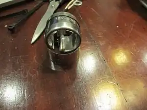 Now find the barrel and one of the nipples. Screw the barrel into the nipple gently and tighten with a wrench on the cut out section. Be careful not to deform the nipple.
