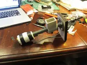 Attach the whole extruder to a board using the provided screws. Make sure to predrill the holes in the board and the wood. Leave about 6in of board in front of the barrel.
