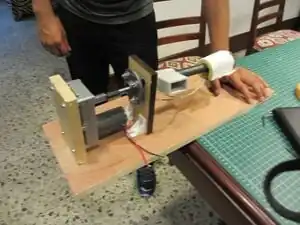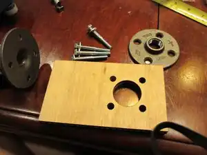 Use screws to connect the motor to the flat piece of wood with the four small holes.
