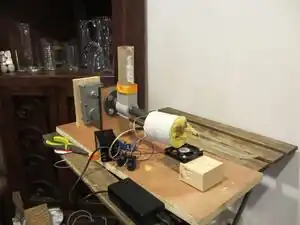 Put the feed screw into the barrel. Place the wood so that the end of the feed screw comes out of the hole. Take the four bolts add a washer to each and put them through the small holes in the nipple connected to the barrel and the small holes in the wood so that the washer is flush with the nipple and the extra is coming out of the wood holes. You may need to people for this step one person to hold the bolts in place and the other to add components. Now add a spacer to each bolt. Add the second nipple so that the flat side is facing the wood. Finish by adding a washer and nut to each bolt and tightening by hand. Check to see if about 1/4in of the feed screw sticks out of the barrel, if not you need to take it apart and adjust the location of the shaft collar.