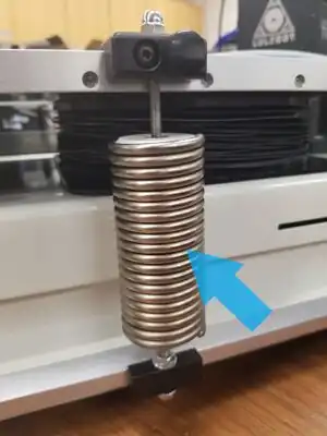 - While holding the spring, slide the mechanism until the pointer is on the desired compliance.