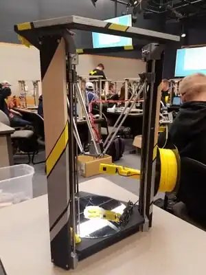 The Athena II 3D printer is a RepRap derived from the Athena Delta Printer, requiring CNC router-cut wooden parts. It is designed to be even easier to assemble, having around 50 fewer fasteners, requiring less wood, fewer printed parts and fewer cables.