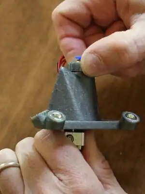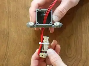 Aligning hot end with slot.Align the hot end in front of the slot in the end effector. The hot end may need to be rotated to fit.