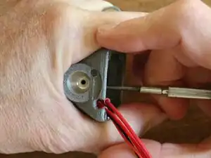 Feed wires through fan opening. Feed the wires through the large opening in the base of the effector and and then through the fan opening.
