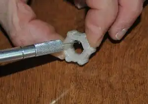 Clean thumbscrew.Clean thumbscrew.Prep a thumbscrew attachment and press it onto the hex portion of the quick connect. Push it all the way to the plastic quick connect ring.