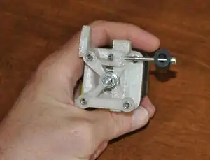 Drive body and linking rod attached to motor.Start the M3 x 6mm socket head head screw in the top-left hole. Do not tighten.