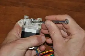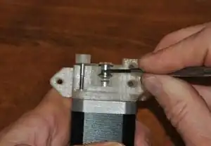 Align the drive gear.Push a short piece of 1.75mm filament through the filament path and align the knurled groove in the drive gear with the filament. When the drive gear is positioned properly, hold it in place and tighten the drive gear set screw with a 1.5mm hex key.