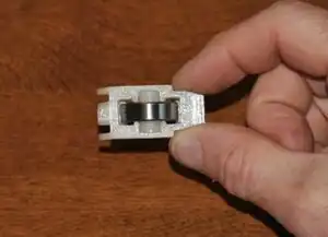 Assembled idler.Push the shaft through the 608zz bearing and snap the shaft and bearing into the idler housing.
