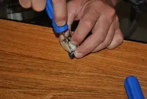 Ream the 3mm holes in the drive body and linking rod with a 3mm drill bit.