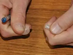 Drilling the fuel line.Drill through the fuel line at the mark.