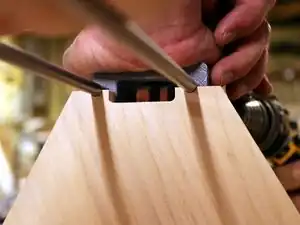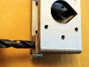 Mark depth to ream guide rod pockets on 8mm drill bit. The idler end placement jig has a small indentation across it for marking the proper depth to drill the motor and idler ends. Use the jig to mark the drill bit with a felt pen.