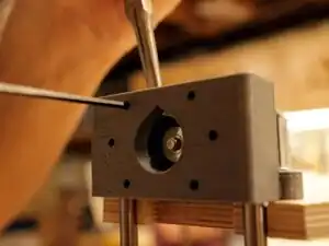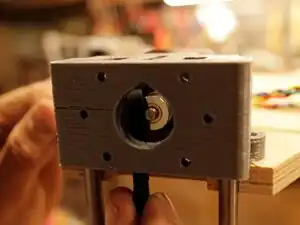 Assemble idler bearings. Create a cartridge of idler bearings and M8 washers in the following sequence: M8 washer - 608zz bearing - 608zz bearing - M8 washer. Insert the cartridge into the interior of an idler end and align as best you can with the 8mm hole.