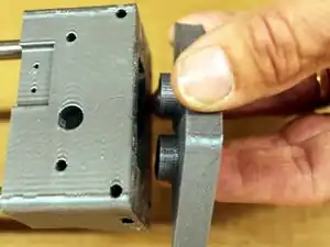 Attach limit switches. With the tip of the precision knife, ream the small holes in the idler ends where the screws secure the limit switches. This makes starting the screws much easier, but don't get carried away. Prepare six M2 x 12 mm socket head cap screws with M2 flat washers on them. The limit switches are both screwed and epoxied to the idler ends, so having the screws ready to go helps since celerity is required to get the switches in place before the epoxy cures. Note that the switches are positioned such that the tab is facing the nearest guide rod (see picture). Mix a small amount of plastic epoxy and smear a thin layer on the side of the switch mating with the idler end. Secure the epoxied switch in place with a pair of M2 screws.