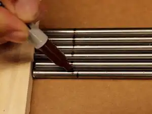 Slide LM8UU bearings onto guide rods. Slide a LM8UU linear bearing onto each of the guide rods.