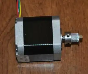 Attch pulleys. Place pulleys on the motor shafts so that approximately 5mm of shaft extends beyond end of pulley (see picture). Rotate pulley so that one set screw will engage with the flat portion of the shaft and tighten that set screw. Tighten the second set screw. Repeat with remaining pulleys and motors.
