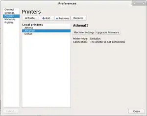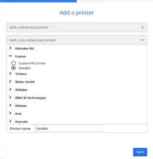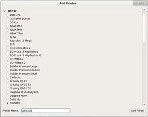 Other machine information.Under the Other list, choose DeltaBot and name the printer AthenaII.