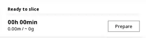 Click the Prepare button. Click the Prepare button in the lower, right corner. Cura will slice the model and replace the Prepare button with a Sav button.