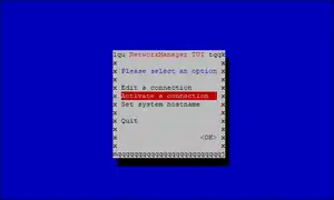 nmtui interface Launch sudo nmtui and select "Activate a connection" using the arrow keys and enter key.
