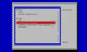 nmtui network connection Select the WiFi network of interest (ex. NETGEAR, LINKSYS...) . Enter the network key if necessary. nmtui should indicate success.