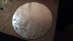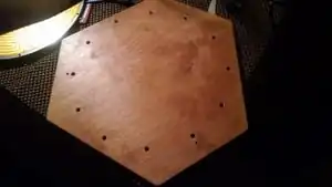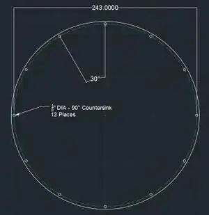 Figure 1: Heat Spreader Hole Dimensions Take the Heat Spreader supplied with the Ultibots kit, and mark 12 points around a circle with a diameter of 243mm as shown in Figure 1. Using the 1/8" drill bit, drill holes at these locations. Then use the countersinking bit to create space for the M3 machine screws to fit flush with the surface as shown in Figure 2. Figure 2: Heat Spreader Holes Drilled